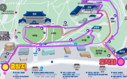 - 경로: 경복궁역 5번 출구 → 경복궁 광장 → 청와대 사랑채 → 청와대 정문