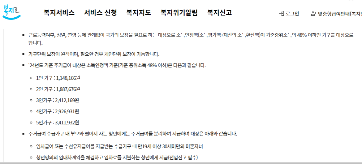 - 소득기준: 기준 중위소득 47% 이하 (1인 가구 기준 약 100만 원대 초반)