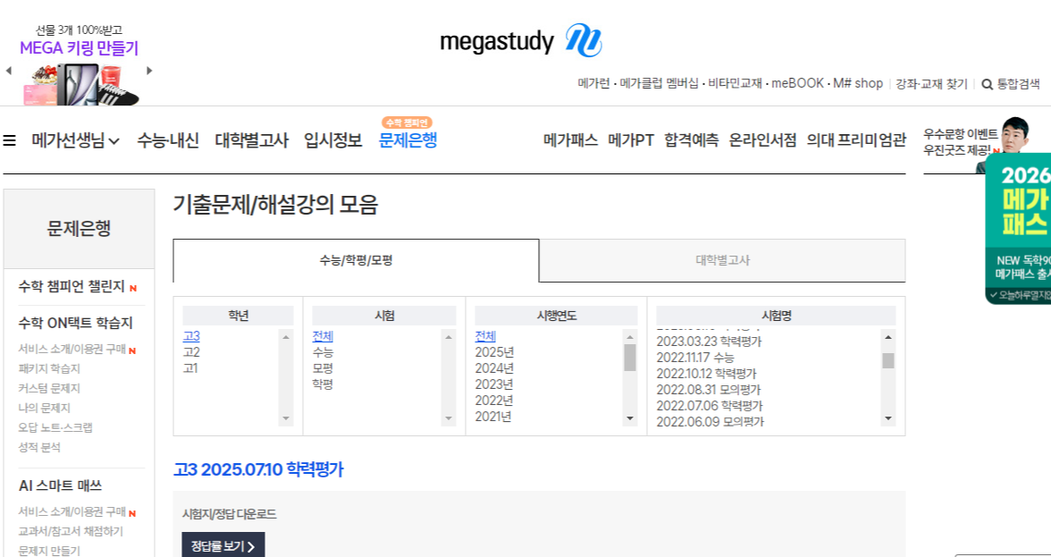 👉 위 사이트들은 "2025년 7월 모의고사 실시간 등급컷" 검색 시 최상단에 노출되는 공식 사이트입니다.