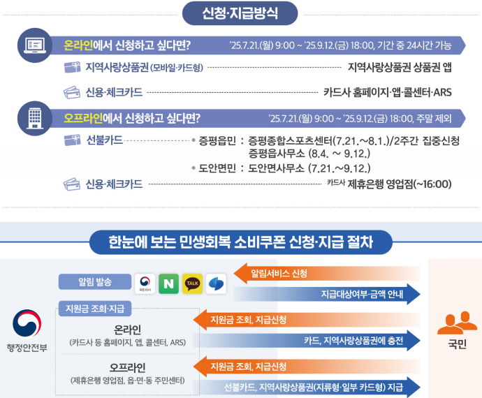 증평군에 따르면, 2025년 8월 초부터 아래 절차로 민생안정지원금 지급이 시작됩니다.