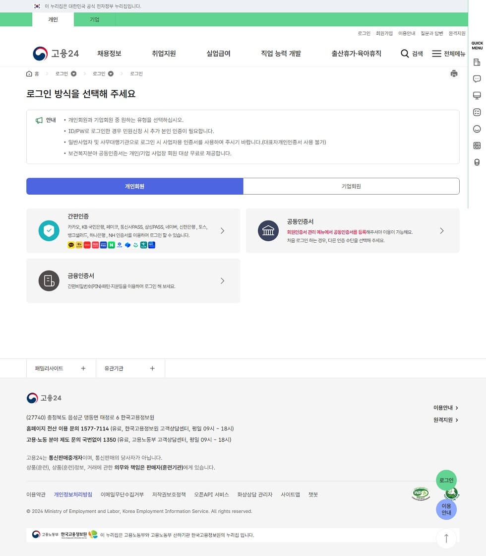 육아 휴직 급여 신청방법은 고용보험 홈페이지를 통해 온라인으로 신청하거나, 각 지역 관할 고용센터를 방문하여 신청할 수 있습니다. 자세한 내용과 신청은 아래 홈페이지 화면으로 이동해서 본인 인증 확인 후 쉽게 신청할 수 있습니다.